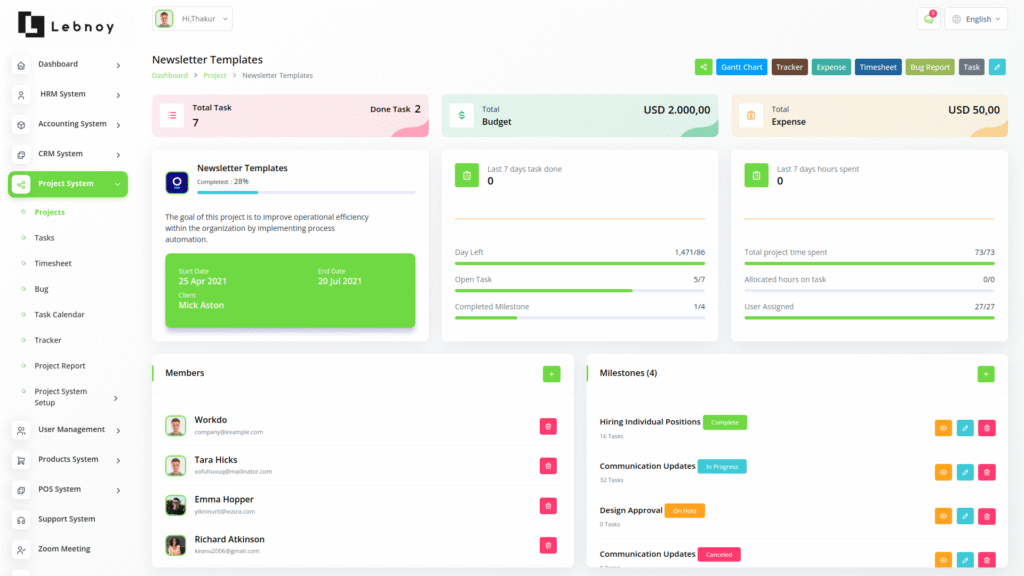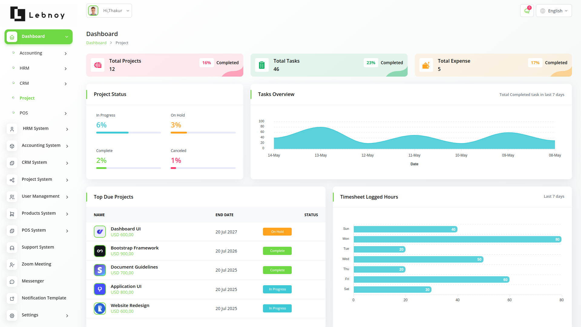 Lebnoy eliminates the need for multiple tools by integrating Project Management, Accounting, POS, HRM, CRM