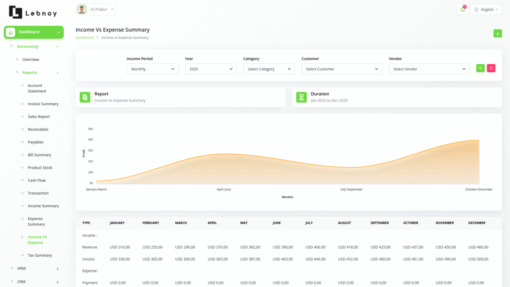 - Filter financial reports by category, customer, or vendor for deeper insights.
