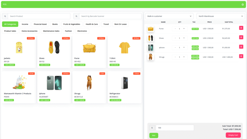 - Manage inventory across multiple warehouses directly from the sales screen.