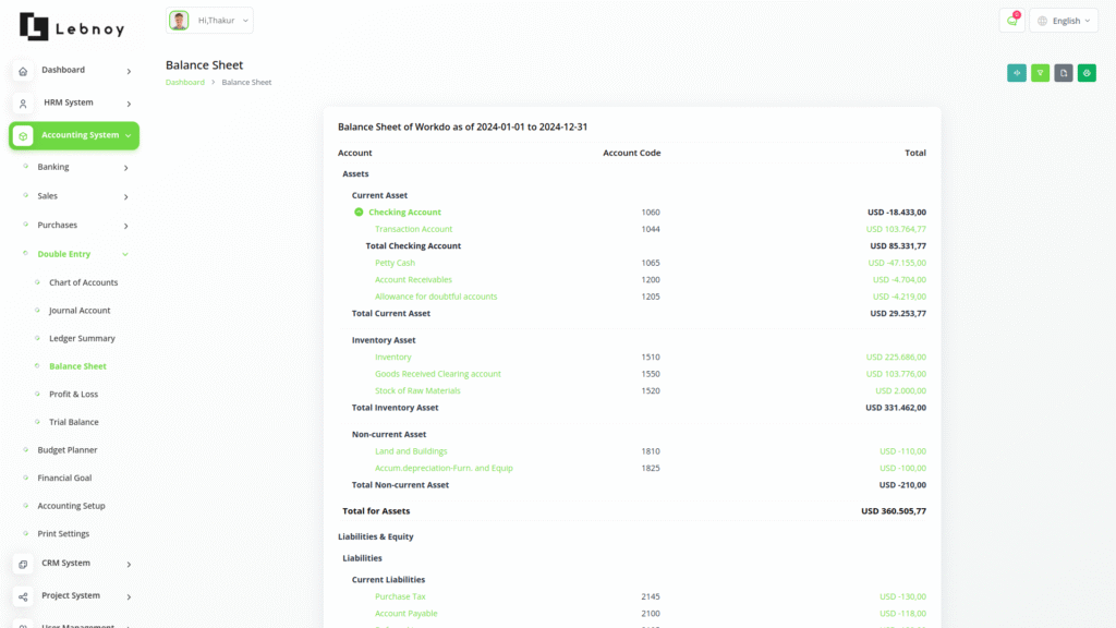Lebnoy enables you to stay compliant and report your finances accurately, including Chart of Accounts, Journal Entry, Balance Sheet, and General Ledger.
